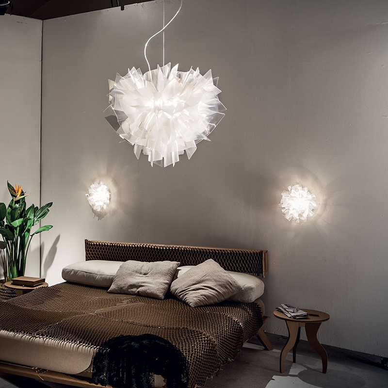 Jak szyty na miarę strój, ta lampa jest składana w całości ręcznie. Zawieszona na suficie nadaje szyku i dodaje blasku pomieszczeniu, niczym szyta na miarę sukienka na pokazie mody w Mediolanie. System magnetycznego mocowania klosza i szeroka gama dostępnych kolorów i rozmiarów sprawia, że VELI jest niezwykle uniwersalna.